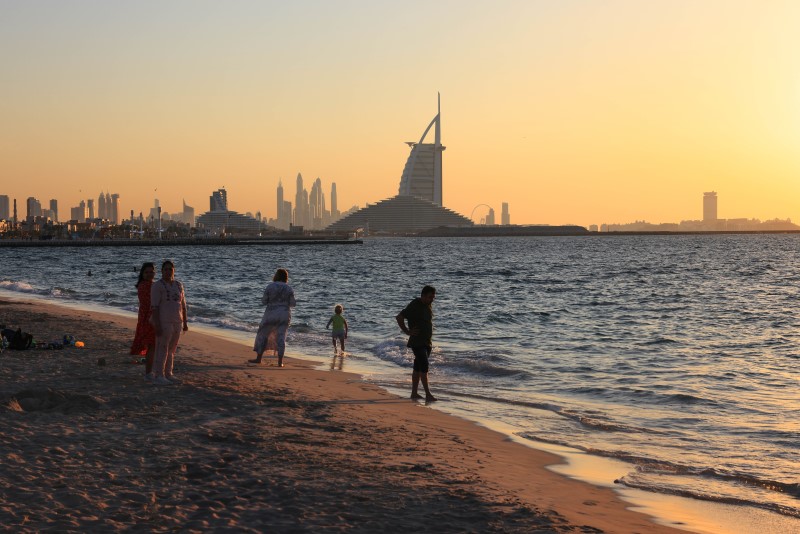ÁÖ¸ÞÀ̶ó ºñÄ¡¿¡¼ ½Ã¹Îµé°ú °ü±¤°´µéÀÌ ¿©À¯·Ó°Ô ÈÞ½ÄÀ» Áñ±â°í ÀÖ´Â ¸ð½À. (»çÁø=VisitDubai)